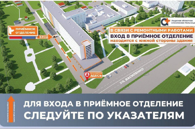 Идите по стрелочкам: в амурском минздраве разъяснили, как попасть в приемное отделение АОКБ