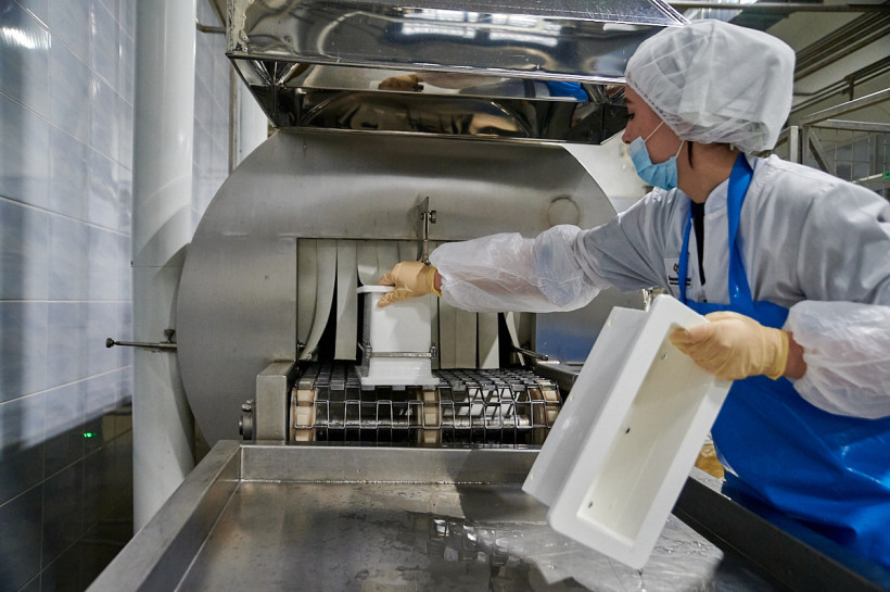 — Температура в цехе упаковки не более 15 градусов зимой и летом. Сыр, когда выходит из камеры созревания, должен быть одной температуры с этим помещением, а если это будет не так, он покроется влагой, которая может попасть в упаковку и сыр, может появиться плесень, — поясняют специалисты.