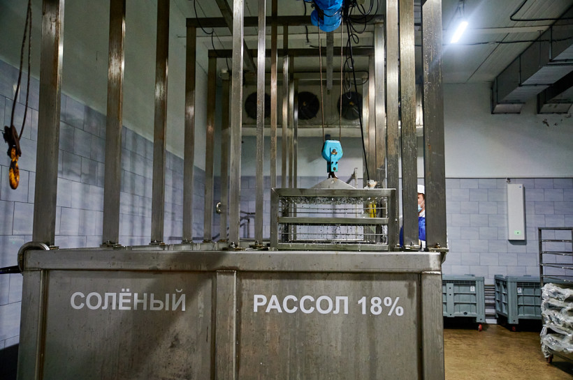 — Срок просаливания зависит от вида, так как разные сыры содержат разное количество соли. После чего сыр извлекается и находится в этом же отделении на просушке 2–5 суток. Температура в этом помещении 10 градусов, в процессе обсушивания сыр переворачивается, — рассказывают технологи.