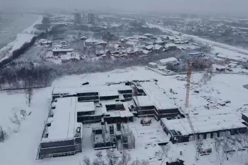 В минстрое Приамурья показали заснеженную стройку Дома социального обслуживания в Благовещенске
