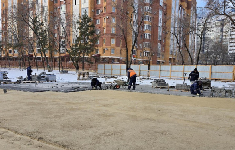 В амурской столице продолжается реконструкция площади Победы. Сейчас в работе строителей наступил технологический перерыв – работы приостановлены на период холодов. Оставшийся объем, а это менее 20 процентов от запланированного, специалисты намерены выполнить за апрель — май 2025 года.