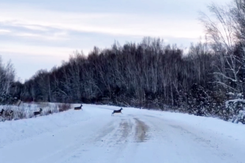 Большое стадо косуль заметили на дороге Новокиевский Увал — Серышево (видео)