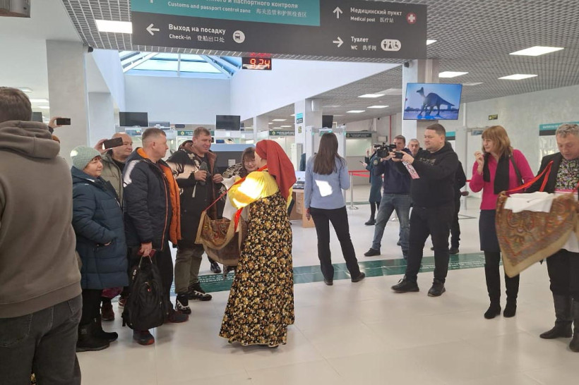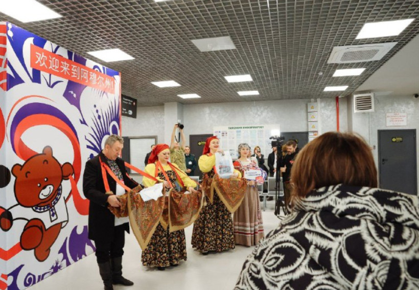 Сейчас пункт пропуска работает по временной схеме и поэтому — в режиме реверса. То есть в одном здании сначала оформляют пассажиров, которые уезжают в Китай, а затем — тех, кто приехал в Россию.