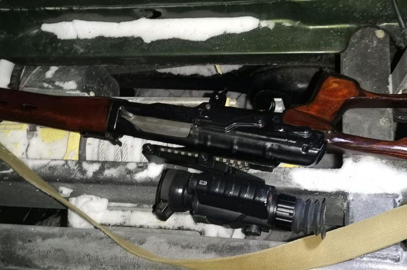 При проверке в кабине трактора обнаружили карабин с пристегнутым тепловизором. Прибывшие на место полицейские изъяли у нарушителей орудия охоты, мясо незаконно добытых животных, а также их трактор.