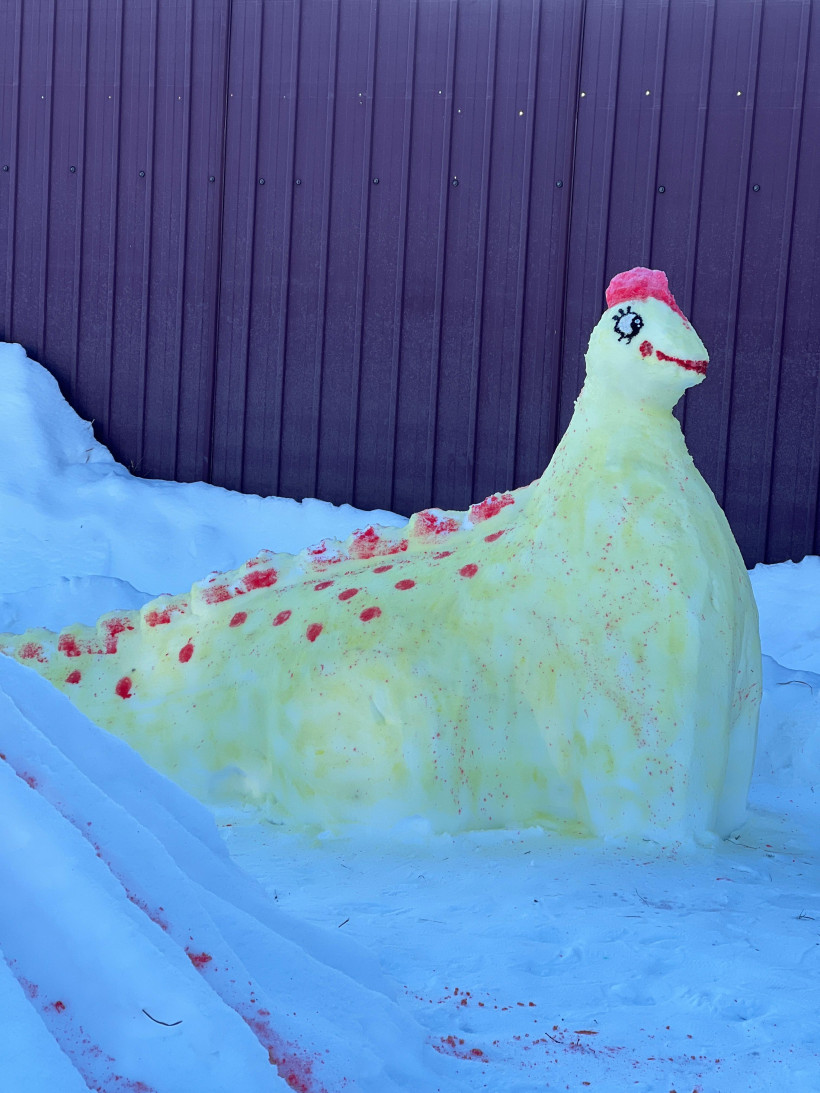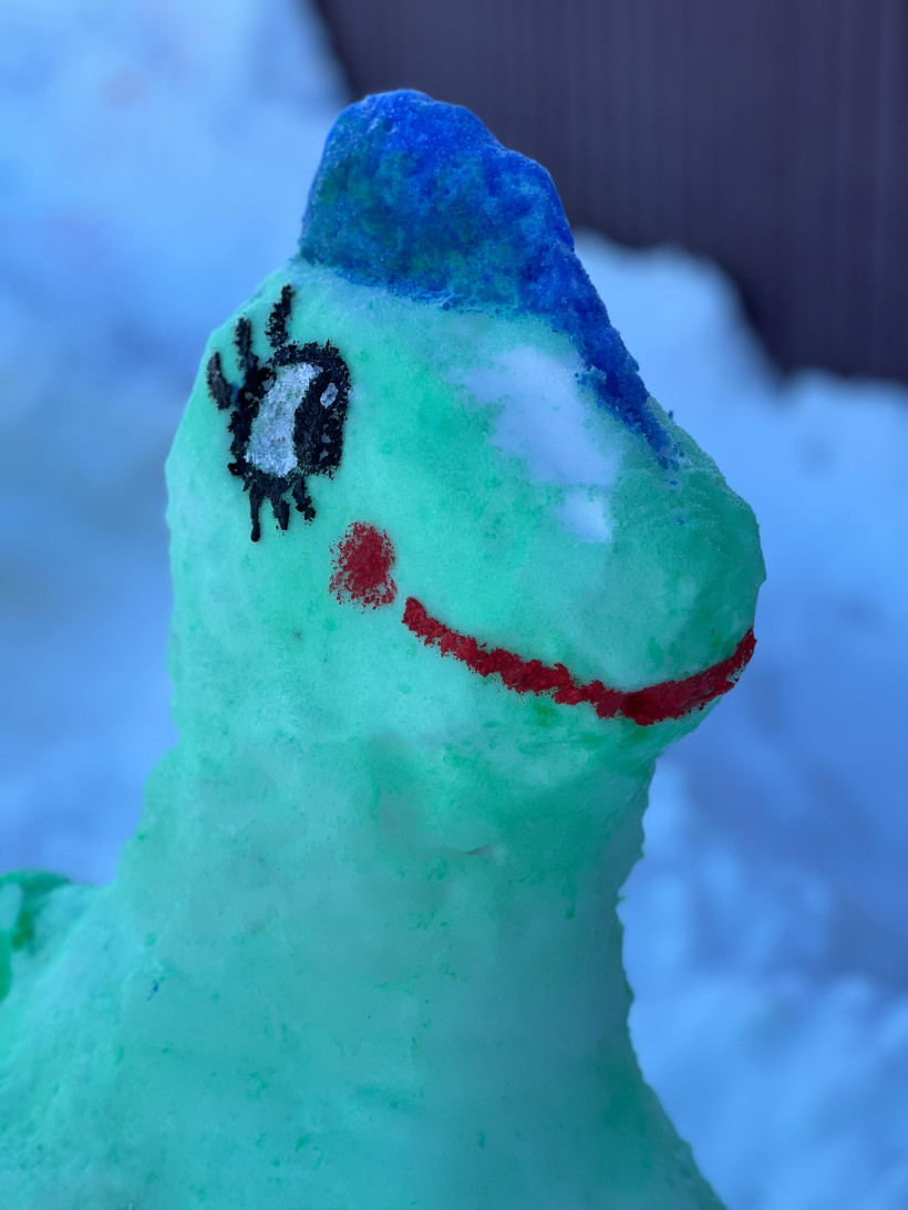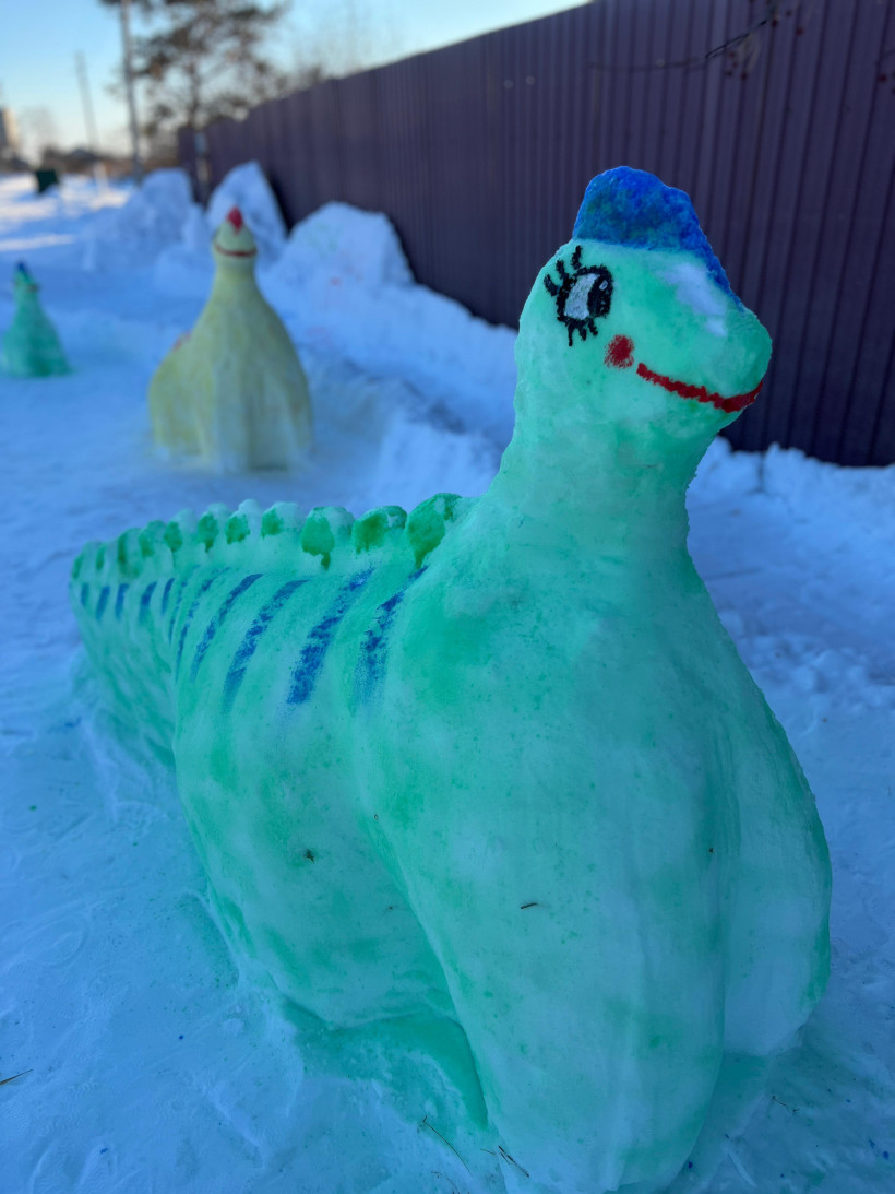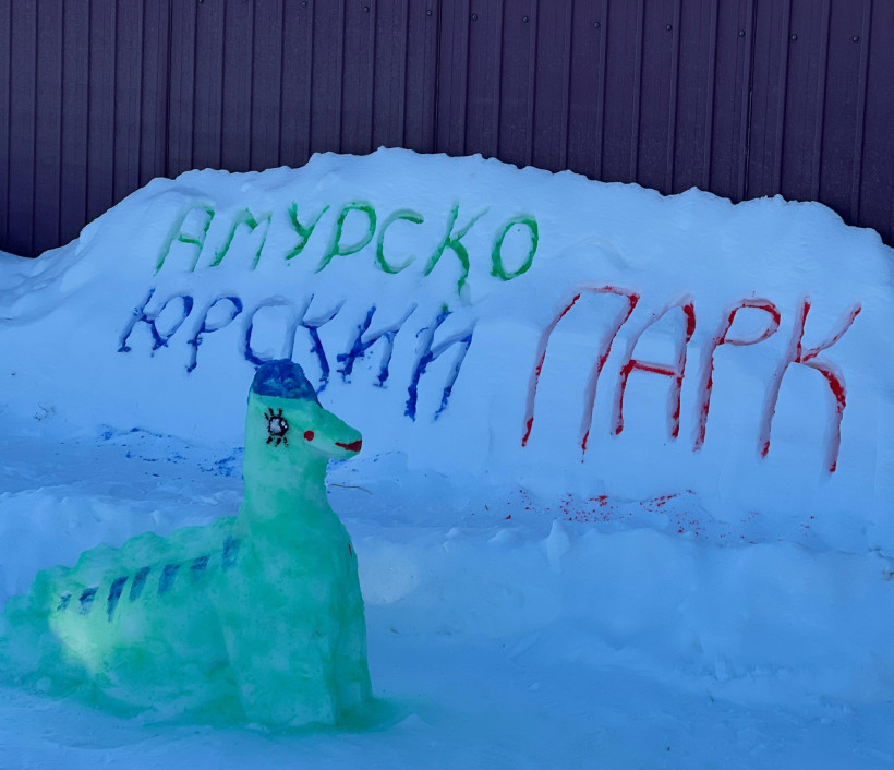 Творческая жительница села Михайловка Благовещенского округа Полина Янакова мастерит «Амурско-Юрский парк». Около своего дома она строит из снега цветные фигуры динозавров.