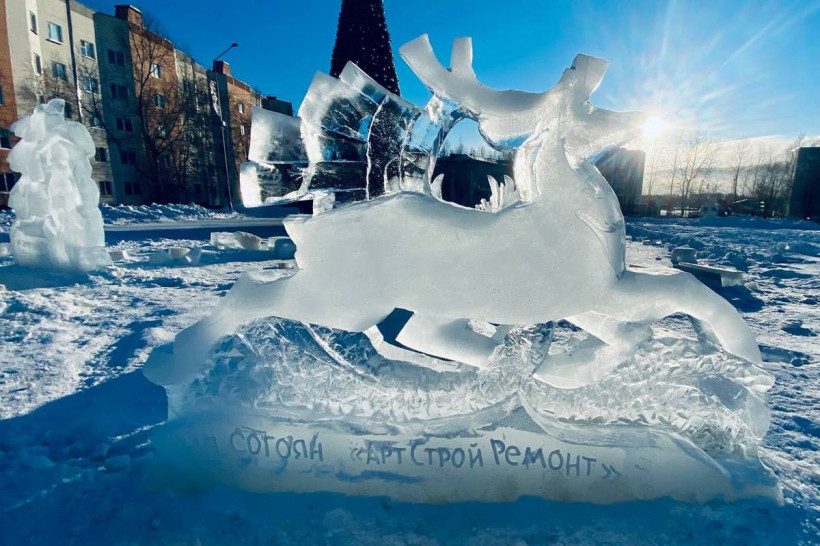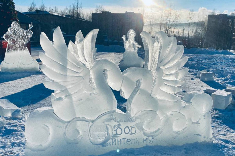 Кроме фигуры змеи на площади также можно полюбоваться и другими творениями ледовых художников. Благодаря спонсорам в этом году скульптуры из кубов замерзшей воды вырезали мастера из якутского города Нерюнгри. Так, на центральной площади установлены медведь, золотая рыбка, зайчик с морковкой, рогатый олень, лебеди, белки и Дедушка Мороз со Снегурочкой.