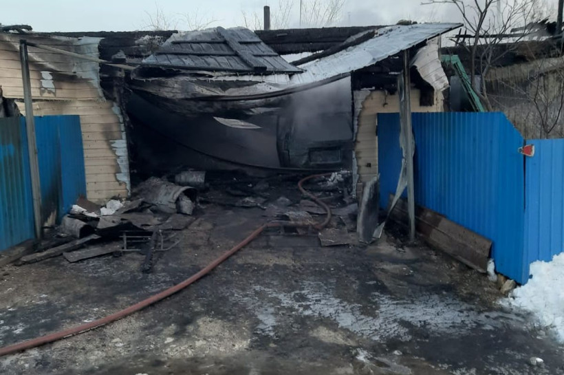 Пожар уничтожил автомобиль и мотоцикл в гараже у частного дома в поселке Сковородинского округа