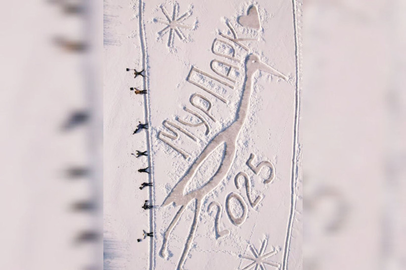 В этом году она решила создать картину, отправила эту идею в рабочий чат Муравьевского парка и нашла отклик. Все начали обмениваться идеями рисунка, в итоге одна из участниц набросала открытку с журавлем и надписью «МурПарк 2025». В воскресный день 15 декабря откликнувшиеся сотрудники, а также добровольцы-помощники взяли лопаты и отправились из Благовещенска на озеро Капустиха около парка.