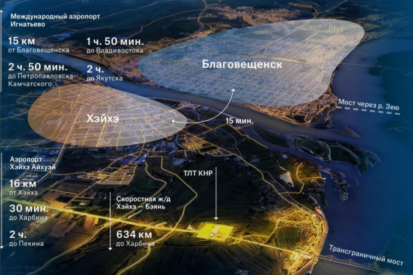 В Благовещенске обустраиваются «Золотая» и «Серебряная миля». Строится уникальная трансграничная канатная дорога, а также музей динозавров, крупнейшая в регионе конгрессно-выставочная площадка для проведения масштабных мероприятий международного уровня и музей российско-китайской дружбы. Кроме того, в столице появятся пятизвездочная гостиница, искусственный пляж и многое другое. Также продолжается масштабная модернизация международного аэропорта. Кроме того, в городе построят областную станцию переливания крови, роддом, детскую школу искусств, международный университетский кампус и многое другое.