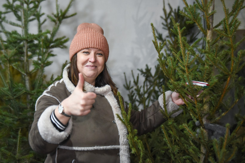 Другая покупательница Анна Юшкевич тоже выбирала новогоднее дерево, чтобы создать праздничное настроение: и дочке, и себе.