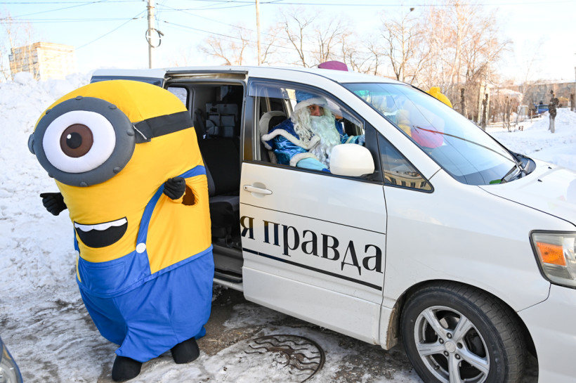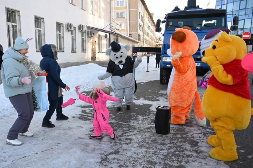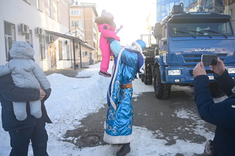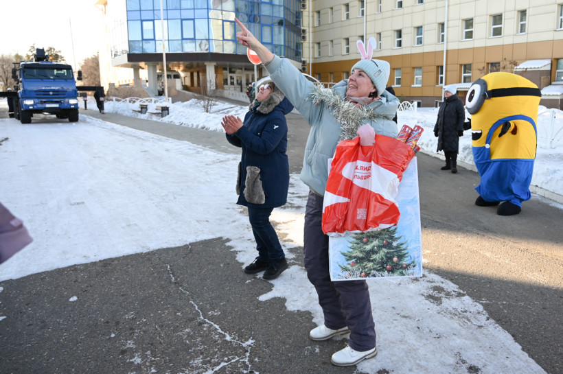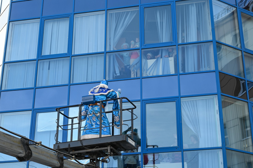 «Нужно дарить добро»: «Амурская правда» снова подняла Деда Мороза к окнам детской больницы