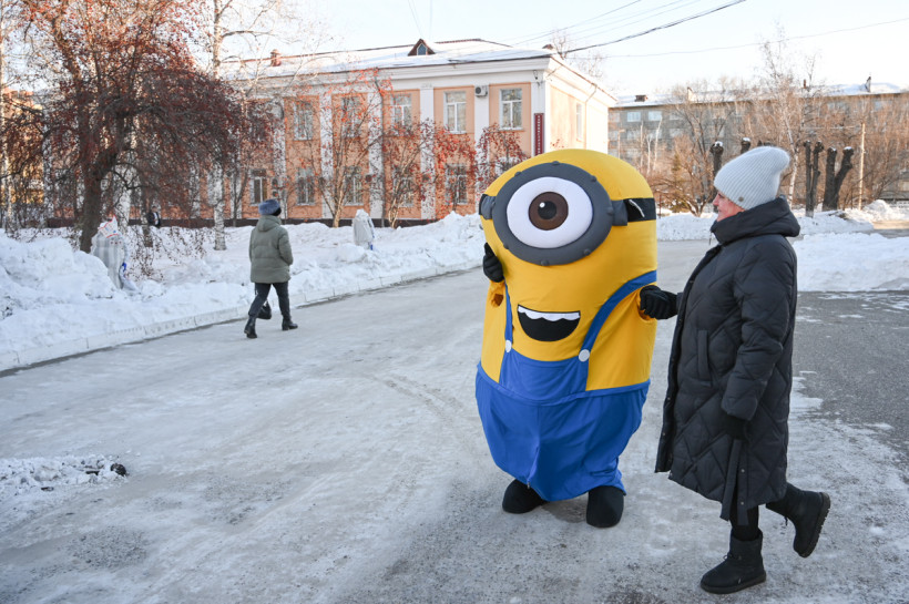 Уже опытные «весельчаки» журналист Екатерина Хоменко перевоплощается в Винни Пуха, а Алина Руденко —– в огромного Миньона. К слову, в этом образе ей пришлось туго — периодически габаритный одноглазый мультяшный герой грозился завалиться в сугроб.