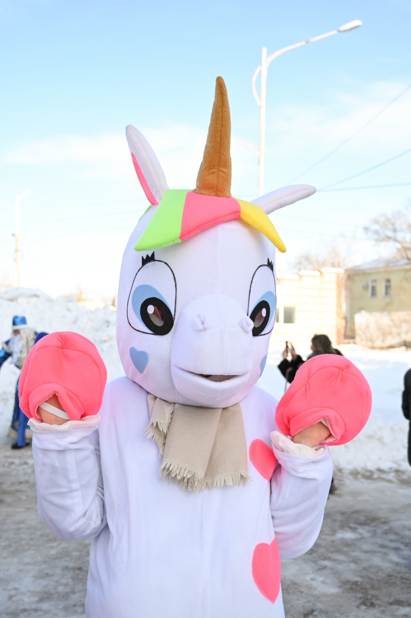 В этом году в число помощников влилась школьница Лиза Хлебникова из Благовещенска. Активистка «поработала» единорогом.