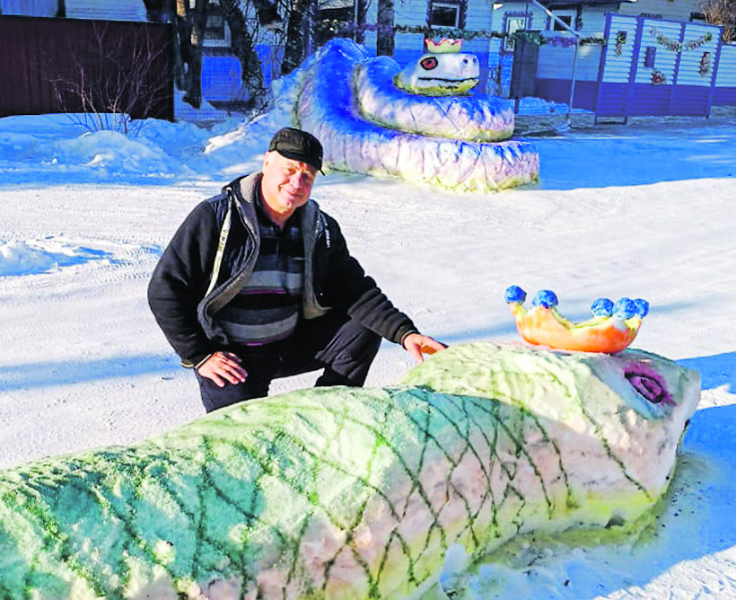 Отец троих детей и дедушка четырех внуков не просто сделал из снега змею, но и разукрасил ее, надел на голову украшение и протянул по чешуйчатому телу гирлянды. С переливающимся огнями символом Нового года фотографируются, его снимают на видео и пересылают в мессенджерах не только жители Зеи, но и всей области.