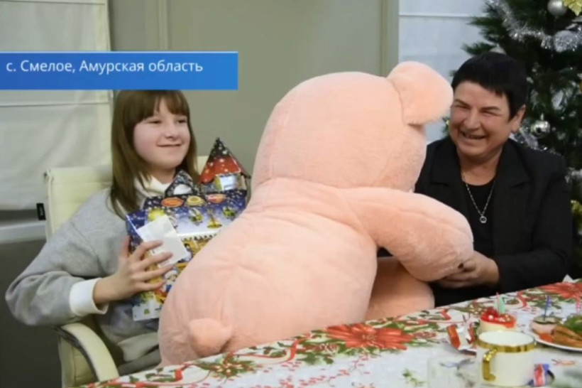 Огромного плюшевого медведя от вице-премьера Правительства России, полпреда президента в ДФО Юрия Трутнева получила 12-летняя амурчанка. Ее письмо он снял во время Всероссийской благотворительной акции «Ёлка желаний». Наташа не просила никаких подарков, просто загадала, чтобы все были здоровы.