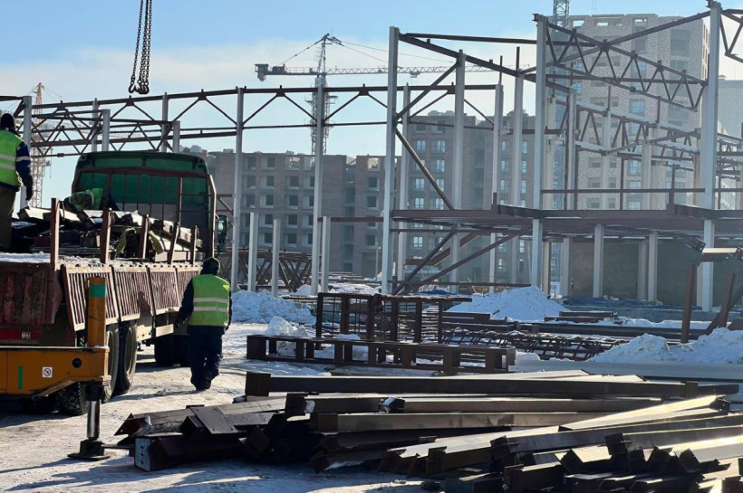 Строители монтируют металлоконструкции и очистные сооружения для спортцентра в Чигирях