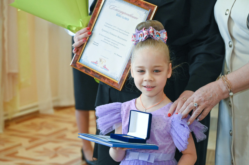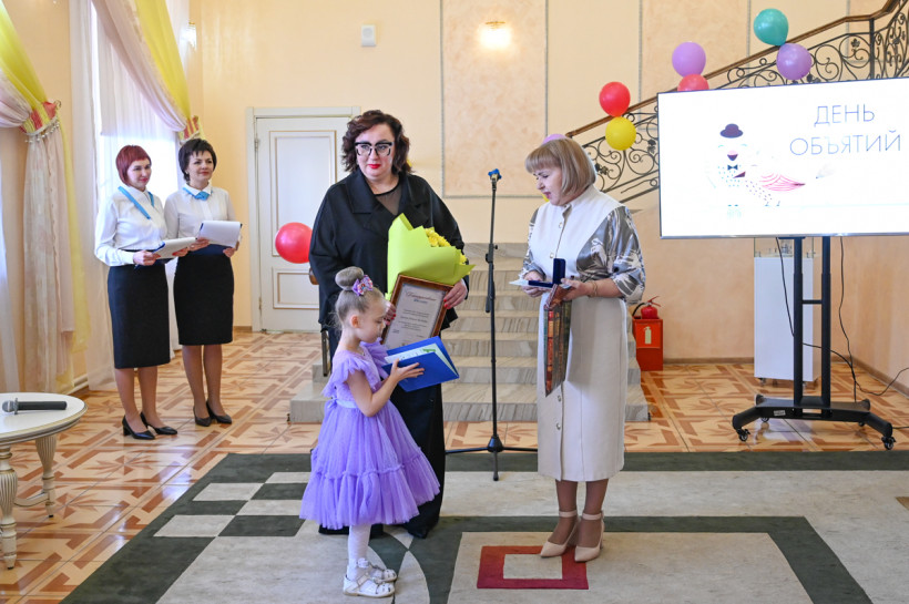 Не обошелся День объятий без подарков. Наталья Томилова вручила мамам благодарственные письма за популяризацию семейных ценностей и воспитание дочерей, а Варвара и Мирослава получили медали «Рожденные в Амурской области» и по книге-альбому «Древо родословной».