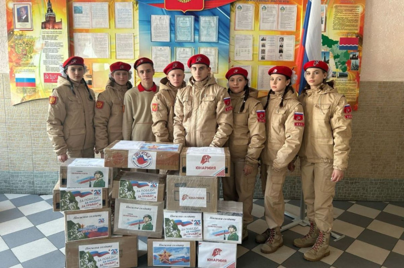В Белогорске отряды Юнармии заняты изготовлением открыток для солдат. Внутрь каждой школьники приклеивают шоколадки в надежде вызвать улыбку у получателя поздравления.