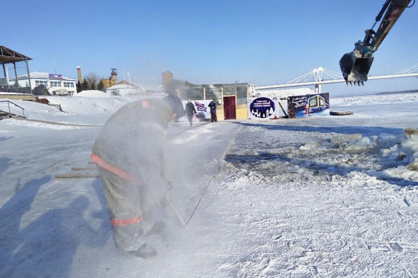 На берегу реки Зеи для проведения заплывов Международного российско-китайского фестиваля зимних видов спорта началась подготовка ледяного бассейна. Его обустраивают в районе центра закаливания «Аквайс» на Амурской, 1. Здесь же разместится городок для участников.