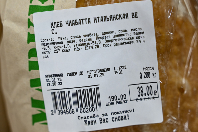 В супермаркете «Самбери» им заняты несколько прилавков: здесь предлагают и свой товар, и продукцию других производителей. Цены — так же на любой вкус. Небольшую булочку хлеба из пшеничной муки можно купить за 22 рубля, а полноценную булку «Заливного» весом в 400 граммов — за 38,9. Хлеб «Питерский» из двух видов муки — пшеничной и ржаной — обойдется в 44 рубля. Вчитаемся в состав: кроме воды и двух видов муки, соли масла и дрожжей, указаны улучшители, стабилизатор, карбонат кальция, эмульгатор Е472 и антиокислитель.