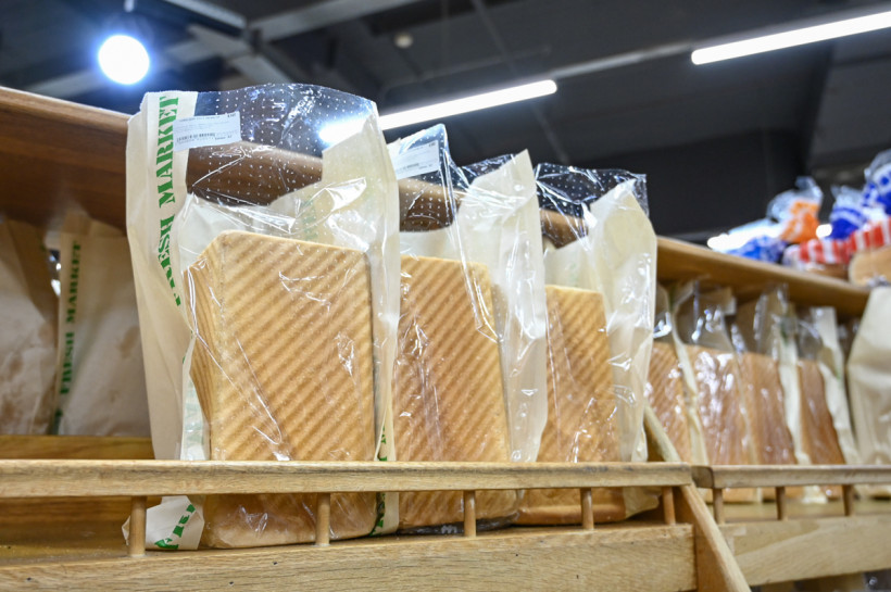 В супермаркете Fresh Market полки с выпечкой буквально ломятся от разнообразия: кроме знакомых «Столичного», «Заливного», «Бородинского», есть интересные варианты. Например, хлеб «Кефирный» весом в 200 граммов стоит 24 рубля, а итальянскую чиабатту можно купить за 38 рублей. Правда, в составе указано непонятное слово «фадона» — поисковик подсказывает, что это улучшитель теста. Хлеб «Кернброд» производители оценили в 50 рублей — в его составе нашлись семена подсолнечника и льна, а «Морской хлеб с ламинарией» стоит 69 рублей за булку. Также местные пекари предлагают цельнозерновой бездрожжевой хлеб: маленькая, но тяжелая булочка в 300 граммов обойдется в 208 рублей — в составе муки не нашлось, указана смесь «вегипан».