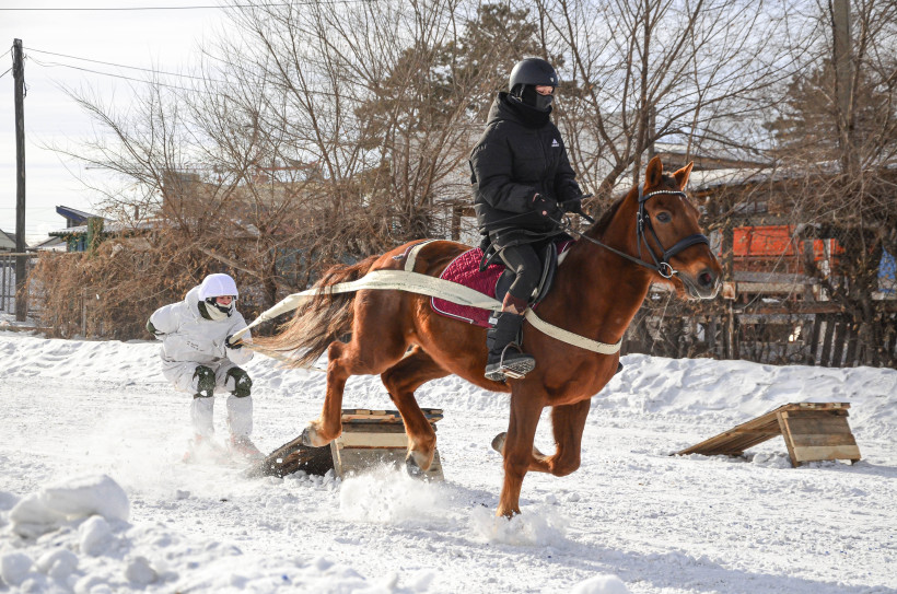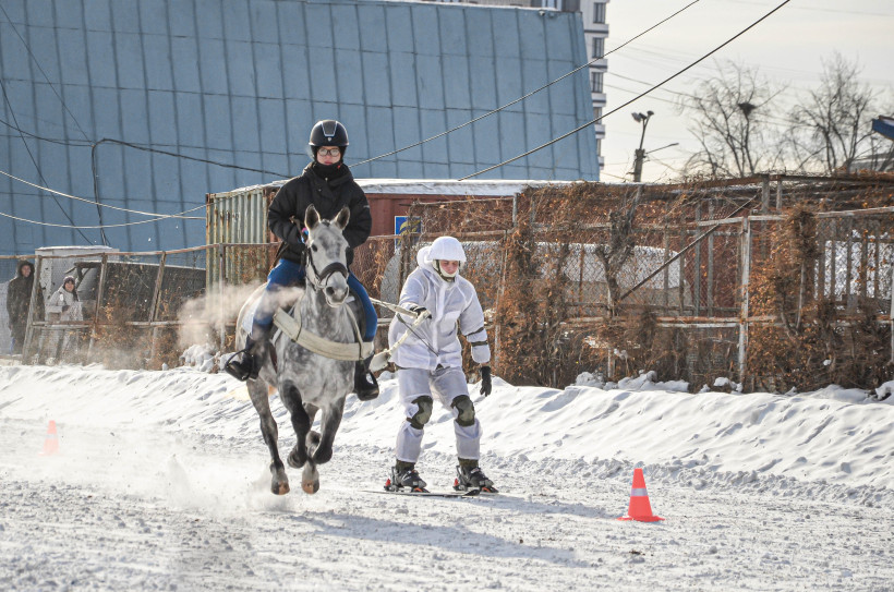 — В каждом заезде соревновались по две пары всадников — лыжников. Задачей всадников было пройти на лошадях дистанцию 300 метров на полном галопе, а лыжникам — пройти змейкой все конусы по трассе маршрута и преодолеть трамплин. Побеждала та пара, которая быстрее финишировала и набрала минимальное количество штрафных баллов, — рассказывает председатель амурской Федерации конного спорта, директор Благовещенского ипподрома и руководитель конноспортивного клуба «Аллюр» Ирина Шишова. — После соревнований все желающие могли попробовать себя в качестве транспортируемого лыжника.