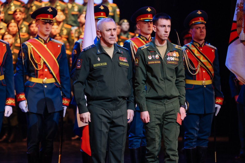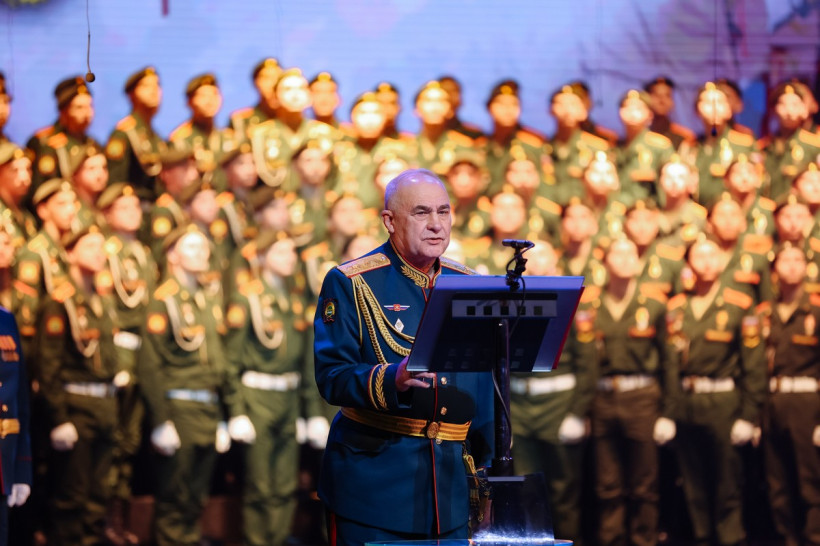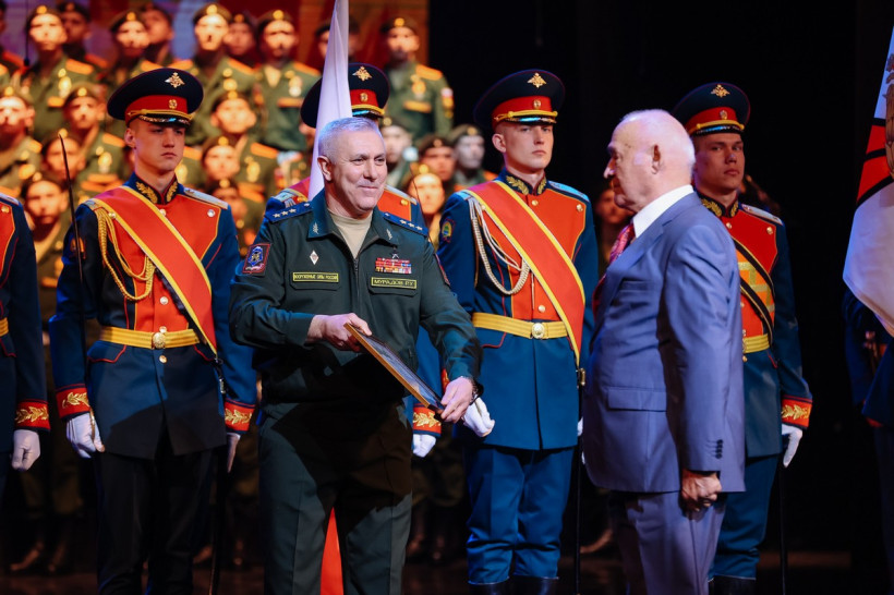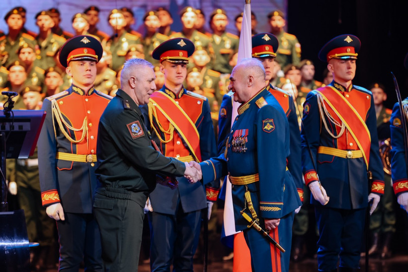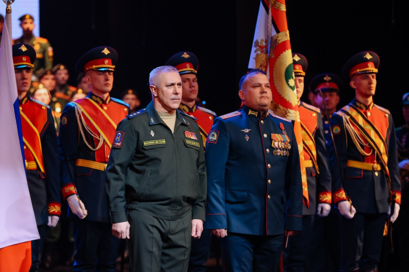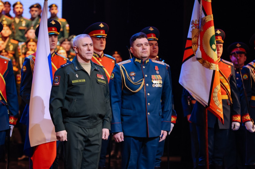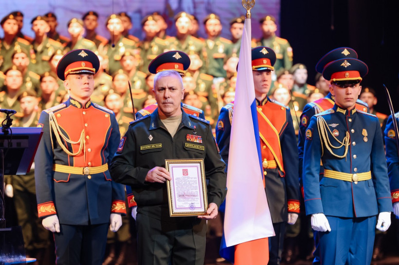 Первый заместитель главкома Сухопутными войсками РФ генерал-полковник, Герой России Рустам Мурадов зачитал поздравление коллективу ДВОКУ от Верховного главнокомандующего – Президента России Владимира Путина.