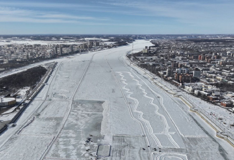 В Благовещенске завершили подготовку трассы для ралли на реке Амур. Заезды гонщиков и показательные выступления пройдут здесь в рамках Российско-китайского фестиваля зимних видов спорта. Общая протяженность трека на государственной границе составила 5,23 километра.