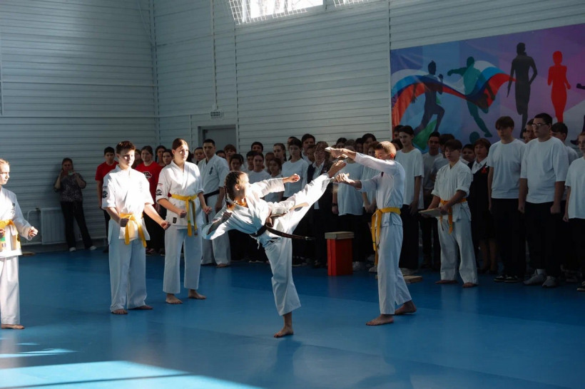 В качестве еще одного подарка титулованный каратист провел для ребят открытую тренировку. В ней приняли участие 60 ребят.