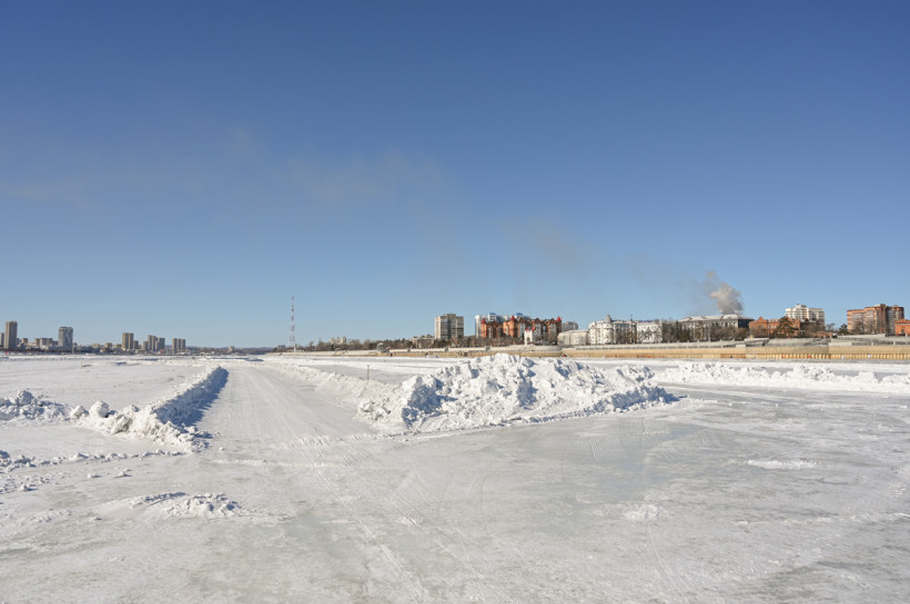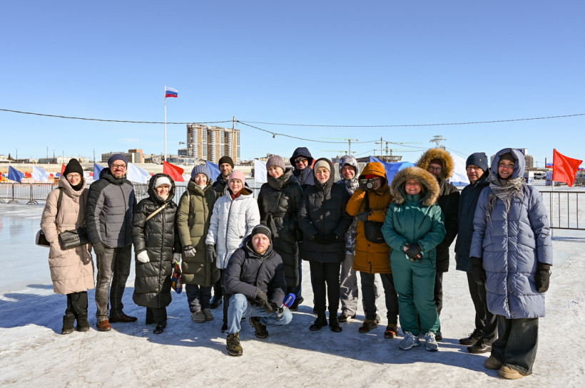 Большой и яркий снежный городок с хоккейной коробкой и развивающимися на февральском ветру флагами хорошо видно с набережной Амура. В этом году организаторы приняли решение сменить локацию спортивных баталий — и не прогадали.
