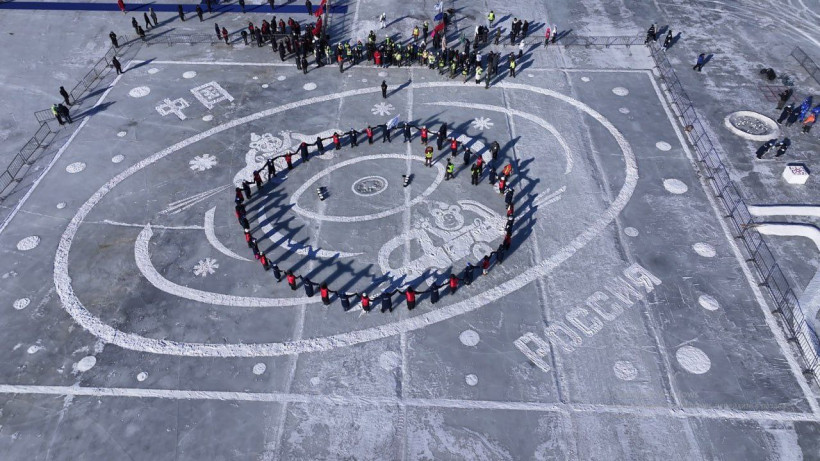 Ледовая открытка на реке Амур стала неотъемлемой частью программы Международного российско-китайского фестиваля зимних видов спорта. Рисунок на замерзшей реке презентовали в первый день программы.