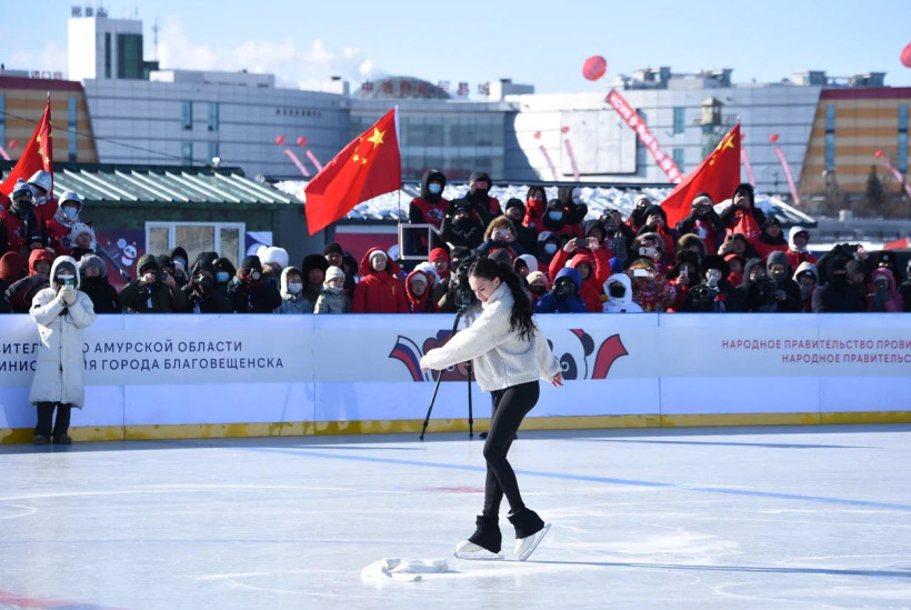 Олимпийская чемпионка в одиночном катании, чемпионка мира и Европы Алина Загитова открыла Международный Российско-китайский фестиваль зимних видов спорта, исполнив на льду приграничной реки номер. «Мне удостоена честь сегодня перед вами кататься», — с такими словами она обратилась к присутствующим.