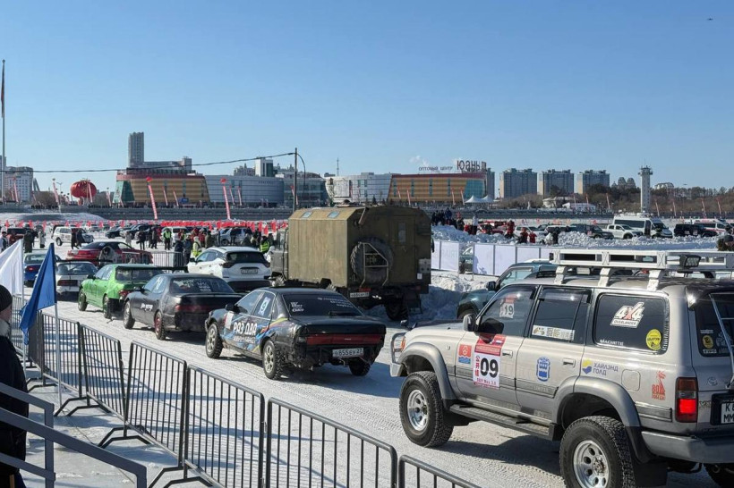 Зрелищное ралли на льду реки Амур в Благовещенске собрало более 200 автоспортсменов из ДФО и Китая