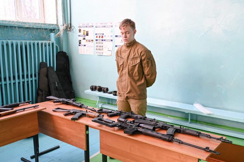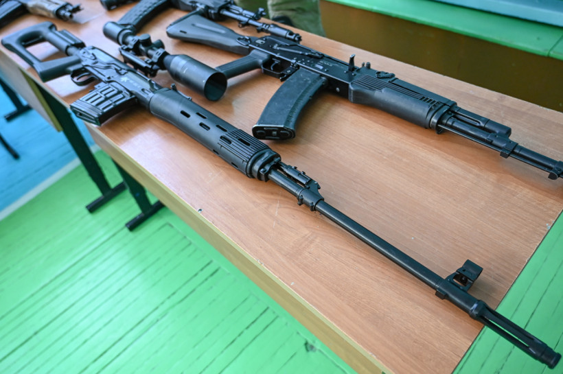 — Есть АК-12 — самый современный образец индивидуального автоматического стрелкового оружия. Конечно, это первая версия — сейчас на СВО используется уже третья. Там немного изменен приклад — регулируется по длине, на предохранитель добавлена полочка, чтобы более удобнее было переключать, а калибр тот же, принцип остается такой же, — пояснил начштаба амурского отделения движения «ЮНАРМИЯ» Сергей Богданов.