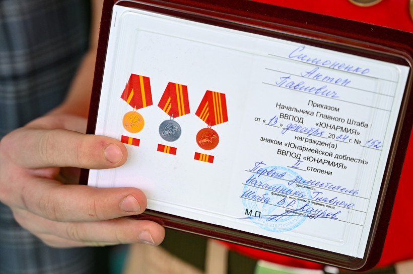 Министр образования Амурской области Светлана Яковлева вручила знаки «Юнармейская доблесть» II степени одним из лучших юнармейцев Благовещенска. Среди награжденных были ученица шестого лицея Юля Канатчикова и Антон Симоненко из школы № 5. Ребят отметили за активную деятельность в юнармейском движении.
