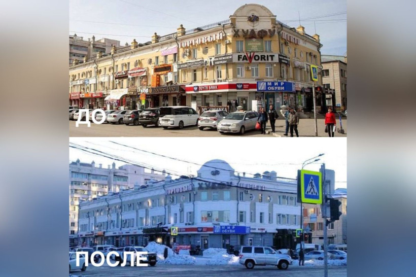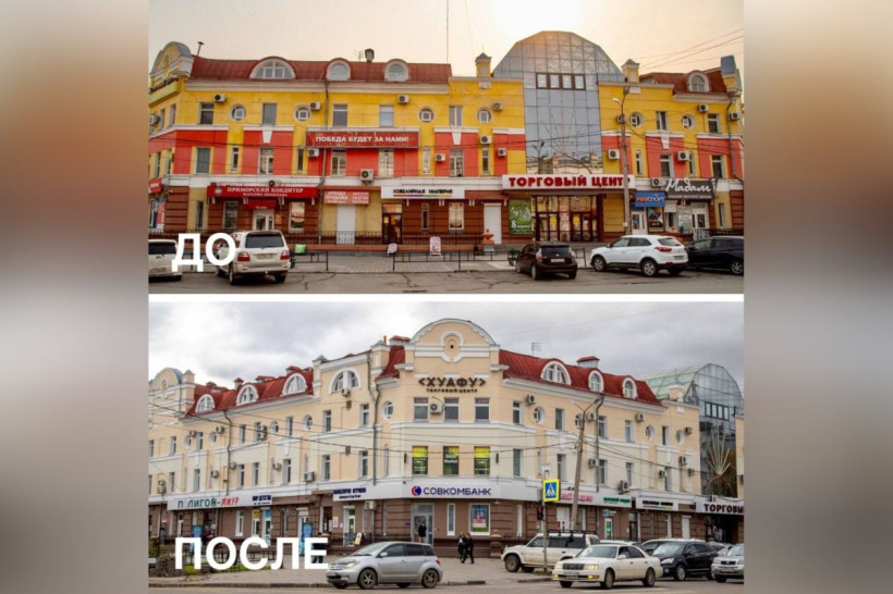 В Благовещенске и Свободном меняют яркие фасады зданий и вывески для соответствия дизайн-коду