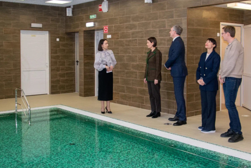 Делегация посетила также новый детский сад с бассейном, строительство которого уже завершено. Показали делегации Центр культуры и досуга и универсальный спортивный комплекс с ледовой ареной — сдать эти объекты планируется в этом году.