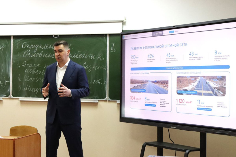 Замминистра и начальник ГКУ «Амурупрадор» Антон Опарин рассказали молодым людям о реализации в области нацпроекта «Инфраструктура для жизни».