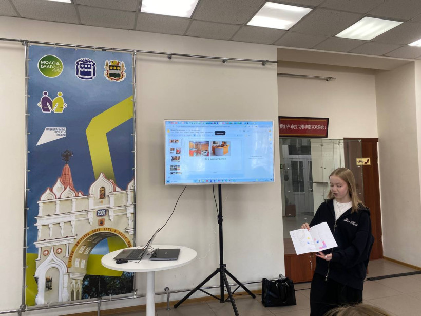 Ученики колледжа цифровых технологий стараются сделать пространство современным и функциональным. Они придумали эргономичный дизайн рабочей зоны, создали небольшой подиум для спикеров, сделали комфортную планировку для работы молодых предпринимателей.