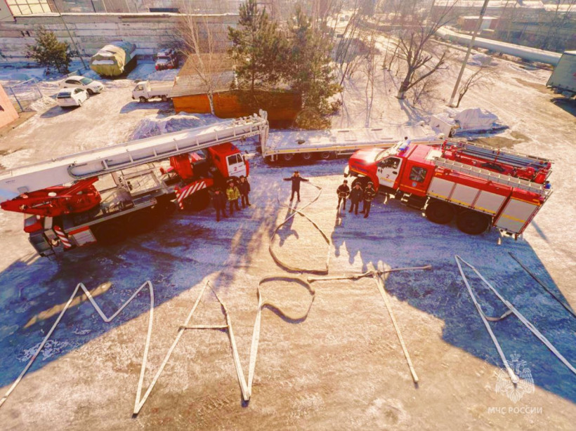 Поздравление из пожарных рукавов и гигантские буквы на снегу: необычные открытки из Приамурья