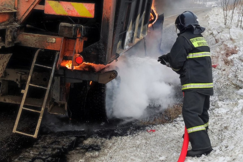 Амурские огнеборцы потушили загоревшийся на трассе в Благовещенском округе КамАЗ