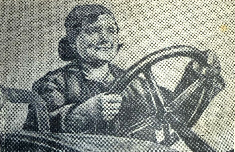 ► Молодая трактористка колхоза «Маяк» Средне-Бельской МТС Степанида Крутик перевыполняют нормы на севе и зарабатывает в смену 8–10 трудодней и 20–30 рублей за экономию горючего.