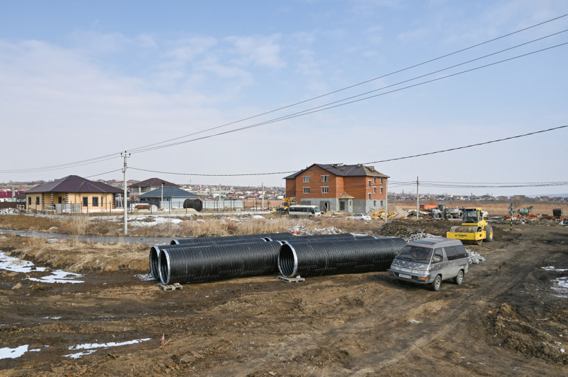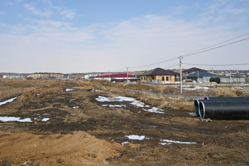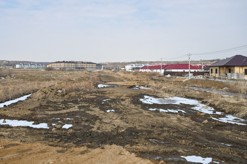 Дело в том, что этот проезд, который на картах сейчас обозначен как улица Красная, упирается в жилые многоквартирные дома. А значит, превратить его в дорогу к новой школе невозможно. Поэтому новую дорогу возводят буквально в чистом поле. Участок длиной чуть меньше 800 метров соединит улицы Василенко и Светлую, и школа получит прямой удобный проезд.