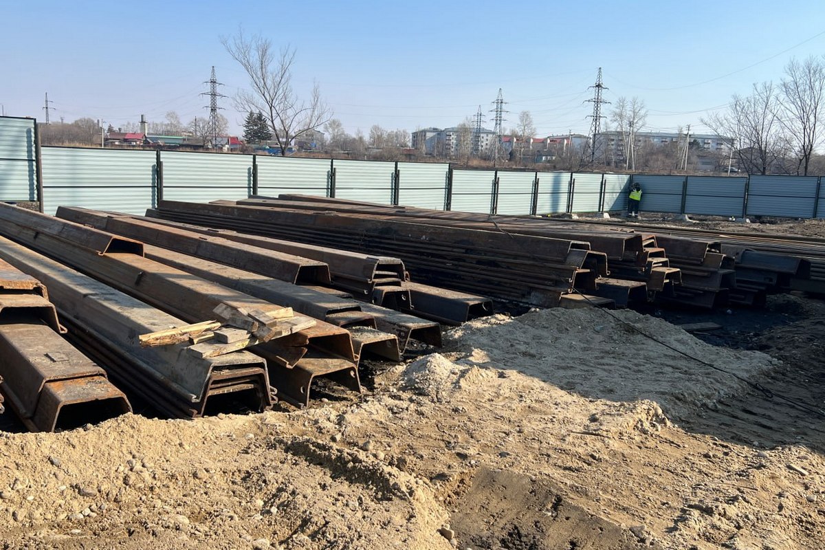 Такой метод позволяет работать с мерзлым грунтом. После начнется возведение шпунтового ограждения. Оно будет состоять из 118 железных элементов. Погружать шпунты будут специальным вибропогружателем и краном грузоподъемностью 100 тонн. А после возведения шпунтового ограждения специалисты займутся строительством подземного железобетонного резервуара объемом более 550 кубических метров.
