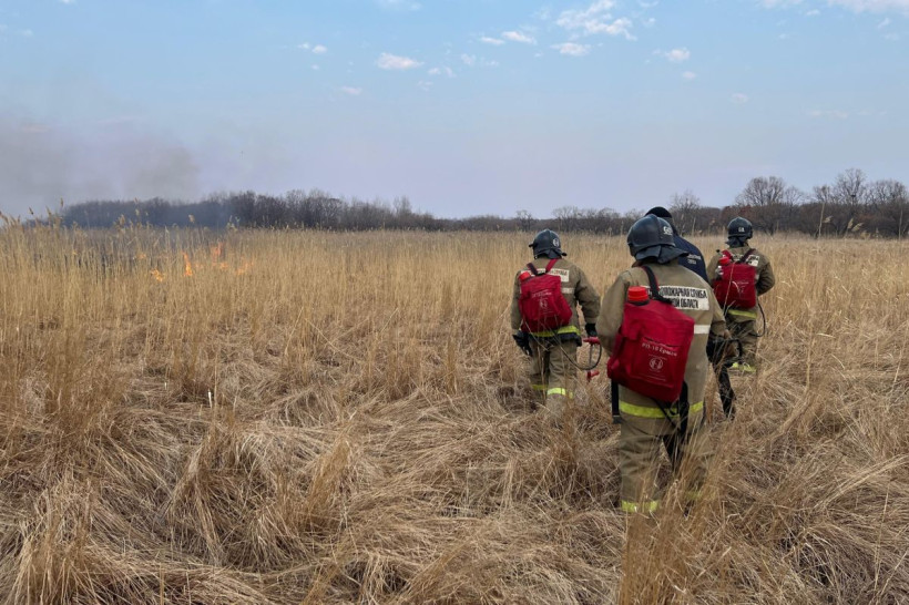 Пожарные тушат пал в районе села Муравьевка на площади 4 гектара