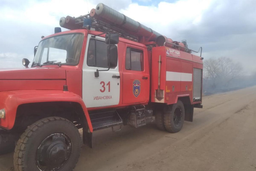 Рядом с селом Дмитриевка в Ивановском округе пал сухой травы распространился на 300 гектарах