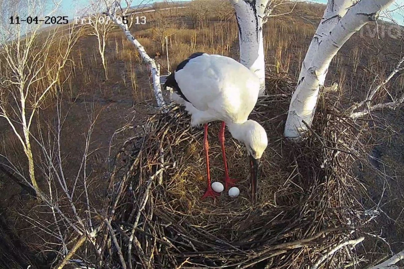 В гнезде аистиной семьи Амура и Зеи из Березовского заказника появилось второе яйцо