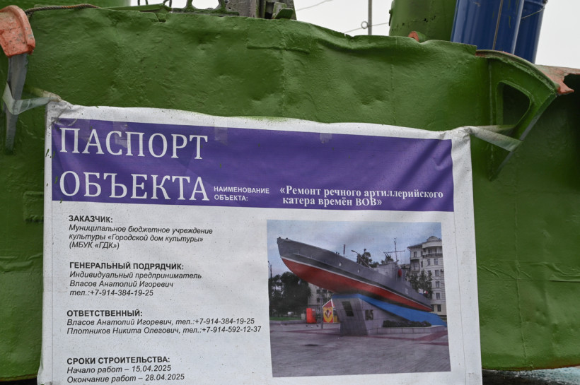 — По сети гуляют кадры, на которых видно: памятник перекрашивают в зеленый цвет, что совсем для него неестественно. Ответим, катер останется таким, каким его привыкли видеть. На фото запечатлен процесс нанесения грунтовки. В исходные цвета его планируют выкрасить до 25 апреля, — рассказали в мэрии Благовещенска.
