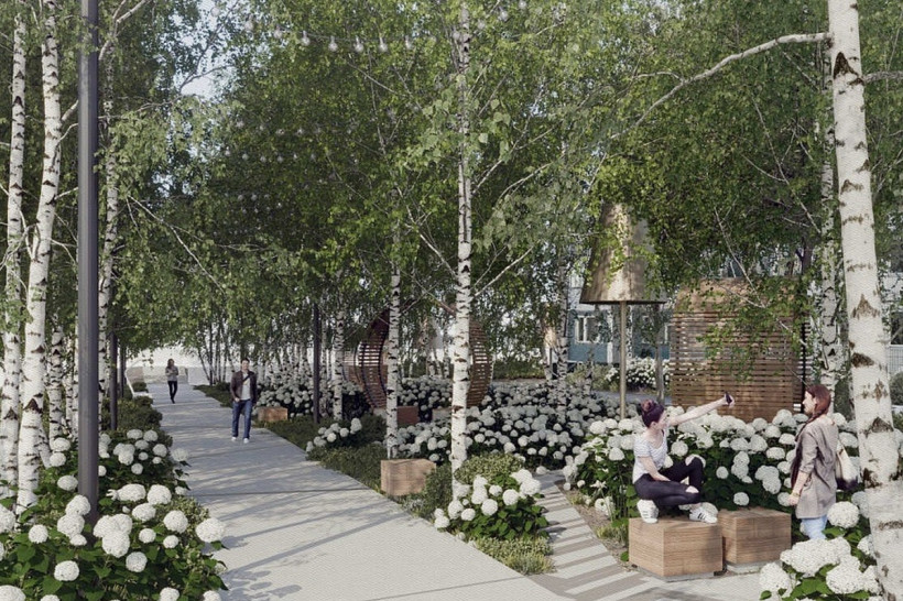 Из рядовой транзитной улицы за несколько месяцев сделают пространство с островками для тихого отдыха, детскими площадками и пешеходными дорожками. В концепцию территории заложен рассказ о жизни строителей Байкало-Амурской магистрали.