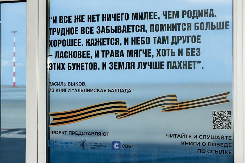 На окнах терминала в залах ожидания размещены цитаты из важных произведений о Победе и специальный QR-код, по которому доступна подборка. В нее включены книги, отобранные экспертами Российской государственной библиотеки (РГБ). Среди сочинений, посвященных бесстрашию и мужеству народа, ― тексты Александра Твардовского, Валентина Пикуля, Расула Гамзатова, Василя Быкова, Булата Окуджавы и не только.